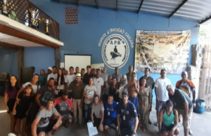 Os pescadores tiveram a oportunidade de tirar dúvidas sobre o uso de protocolo inicial durante a atividade no mar, quais artes de pesca que podem ser utilizadas para capturar tainha e tipos de malha para pesca com rede boieira.