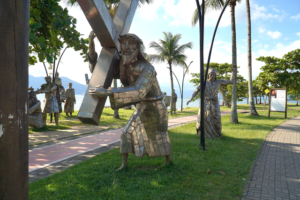 As peças, expostas ao ar livre no Engenho D’Água, mostram Jesus Cristo a Caminho do Calvário sendo amparado por diferentes ícones religiosos, representados por 46 esculturas.