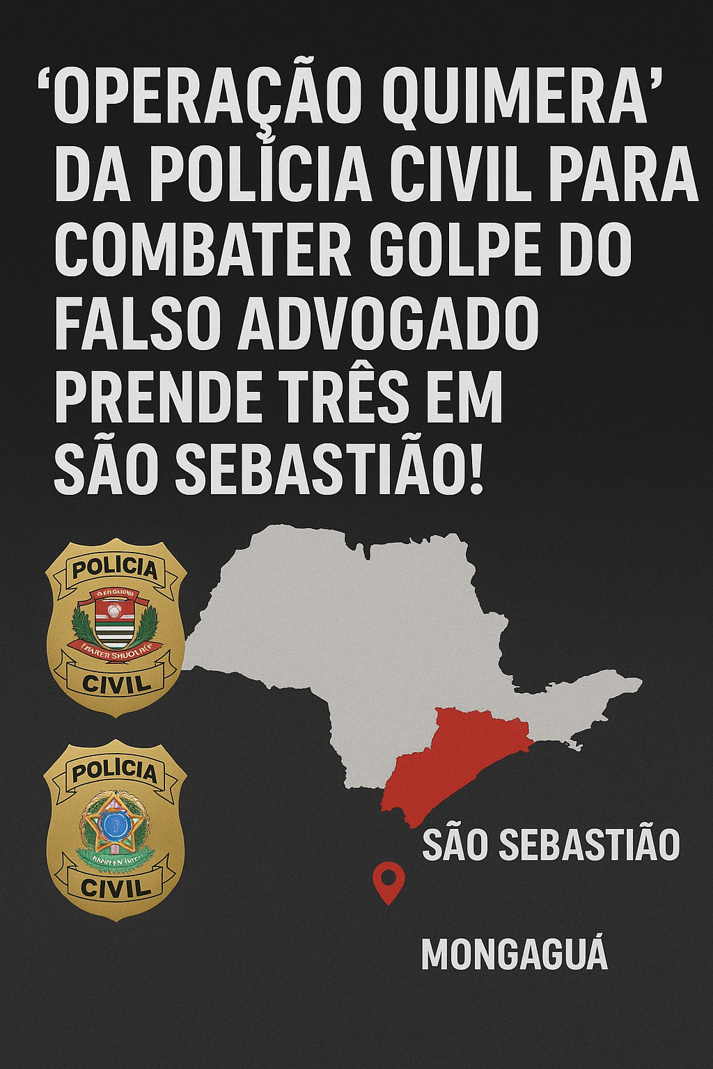 ‘OPERAÇÃO QUIMERA’ DA POLÍCIA CIVIL PARA COMBATER GOLPE DO FALSO ADVOGADO PRENDE TRÊS EM SÃO SEBASTIÃO!