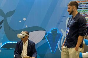 O município participou de forma ativa em dois estandes. No espaço próprio, os visitantes vivenciaram uma experiência imersiva em óculos 3D, que os transportava para um passeio virtual de barco pelo Canal de São Sebastião, com direito à observação de baleias-jubarte.