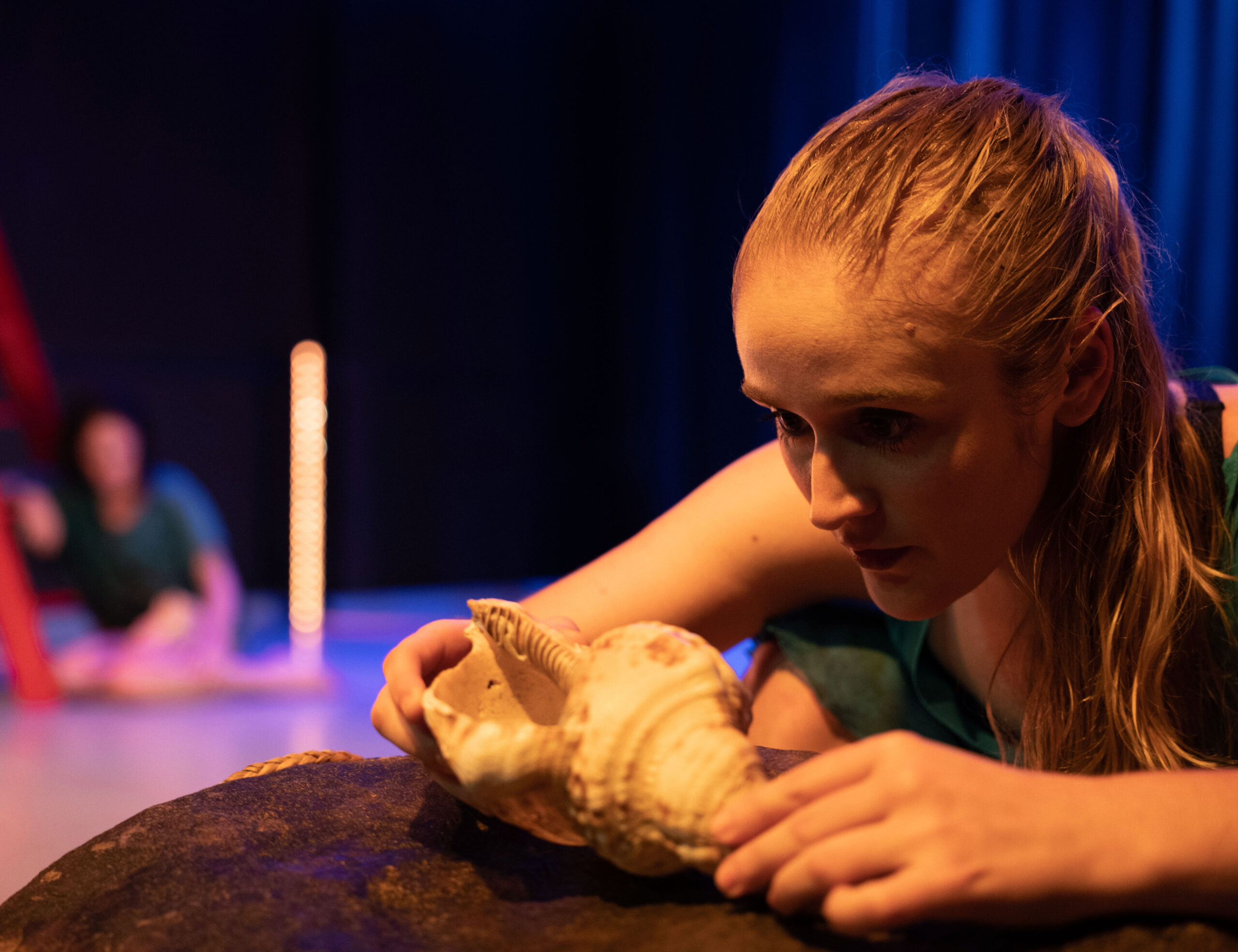 Inspirado no livro Presente do Mar (Lindbergh, A.M., 1991), o espetáculo nasce de pequenos flashes poéticos, entrelaçados à imagem de uma mulher em recolhimento. Na obra, Anne Morrow Lindbergh encontra-se sozinha numa ilha, num espaço aberto e atemporal, onde passa a refletir sobre as fases e vivências da vida feminina, guiada pela observação sensível de diferentes conchas recolhidas durante os seus passeios solitários à beira-mar. A cada concha, a autora atribui um nome simbólico, que corresponde a um momento ou sentimento específico, revelando uma teia de comparações sutis e delicadas. É por meio dessa contemplação que o espetáculo convida o público a mergulhar numa jornada íntima de autoconhecimento e escuta do essencial.