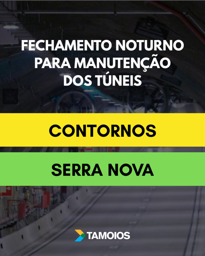 Nessa semana, os fechamentos noturnos de manutenção dos túneis vão acontecer nos Contornos e na Serra Nova. As atividades vão ocorrer das 22h às 6h do dia seguinte, conforme programação abaixo: