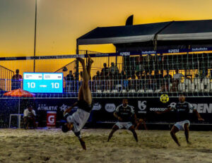 A modalidade de beach soccer completa a programação esportiva do evento com um campeonato disputado por oito equipes, divididas em dois grupos de quatro times. As equipes se enfrentam dentro dos próprios grupos, totalizando 16 partidas na fase inicial da competição.