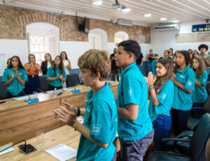 O protagonismo feminino foi o grande destaque na eleição da nova Mesa Diretora, composta integralmente por alunas de escolas municipais. A presidência ficou a cargo de Laura Thayara (EM Prof.ª Patrícia Viviani Santana), acompanhada por Pietra Barbosa (EM Prof. Antônio Luiz Monteiro), como vice-presidente; Valentina Nunes (EM Prof.ª Luiza Helena de Barros) como 1ª secretária e Sarah Rafaelly (EM Prof.ª Sebastiana Costa Bittencourt) como 2ª secretária.