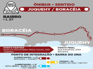 O Transporte Público Coletivo de Passageiros de São Sebastião desde o dia 06 de dezembro possui duas linhas Troncos (Eixos), duas Regionais e 10 Alimentadoras. A Linha Alimentadora L27 é responsável por levar passageiros de Boracéia até Juquehy apresentando uma inovação com possibilidade de integração em Juquehy para fazer conexão com o Centro e outros bairros da Costa Sul e região central de São Sebastião.