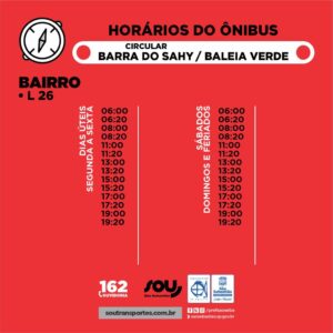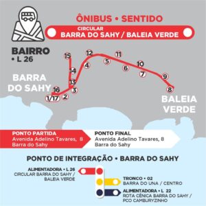A linha L26 circular (alimentadora) possui uma função importante por fazer o deslocamento de muitos munícipes que moram na Barra do Sahy e trabalham na Baleia. Por este motivo, essa linha tem uma importante função no sistema de transporte urbano de São Sebastião e precisa sempre operar com pontualidade.
