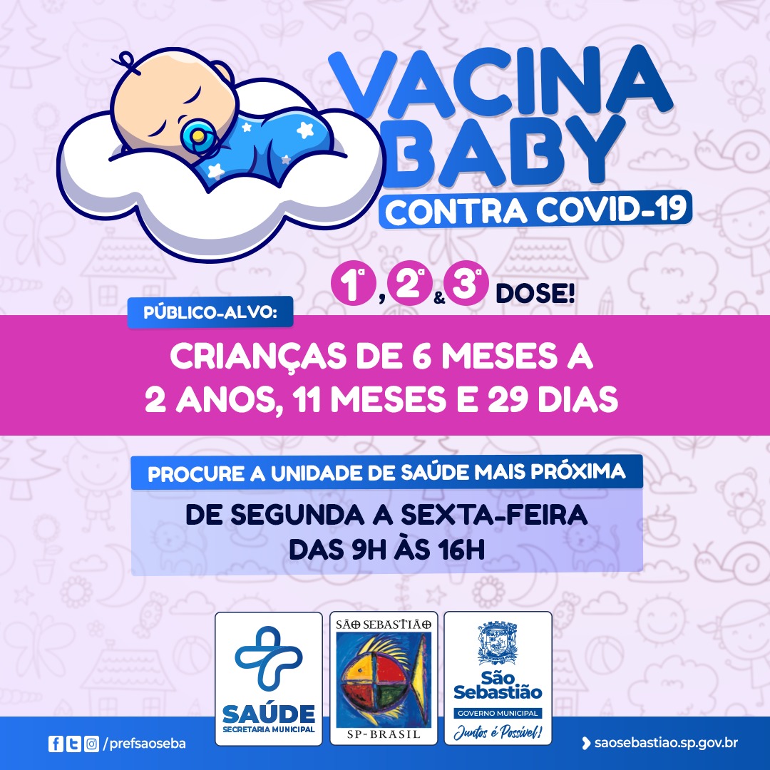 A Prefeitura de São Sebastião, por meio da Secretaria de Saúde (SESAU) e da Fundação de Saúde Pública (FSPSS), retomou, nesta segunda-feira (6), a aplicação da vacina contra a Covid-19 para crianças de 6 meses a 2 anos, 11 meses e 29 dias.