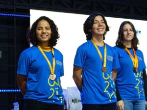 Os alunos Marcos Taylor da Silva Rocha, da EM Prof.ª Cynthia Cliquet Luciano, da Enseada; Marcella Sousa Siqueira, da EM Luiza Helena de Barros, de Barequeçaba; e Gabriel Osvaldo Gonçalves Domingos, da EM Prof. Walfrido Maciel Monteiro, do Morro do Abrigo; conquistaram a medalha de bronze na competição.