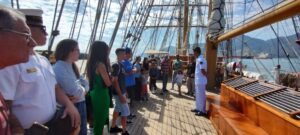 O capitão de corveta Nicola da Rocha Passos Marin, chefe do Departamento de Convés, explicou que quando se entra no navio, o visitante tem a oportunidade de conhecer toda a sua história e finalidade.