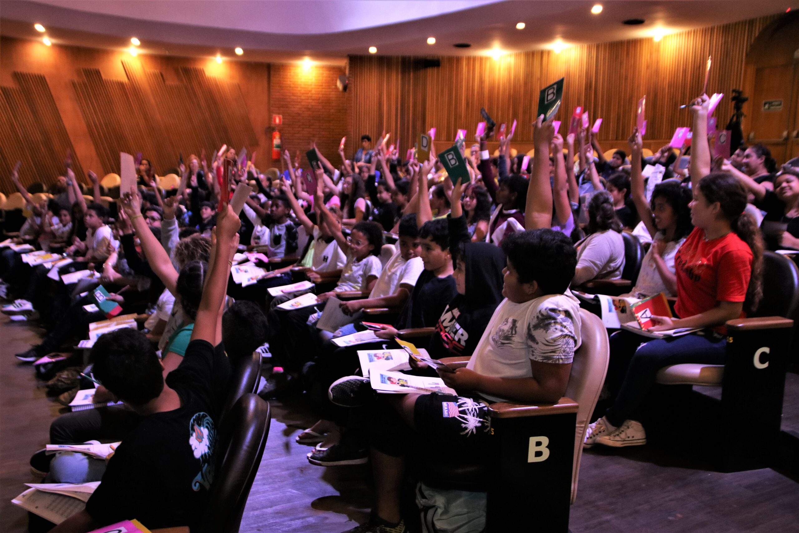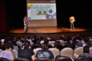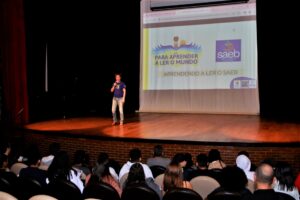 Alunos do 5º e 9º ano da Escola Municipal Prof.ª Nair Ribeiro de Almeida, localizada em Juquehy, tiveram a oportunidade de participar de um uma ‘aula show’ voltada para as provas do Sistema de Avaliação da Educação Básica (SAEB), em atividade ocorrida, na última quarta-feira (16), no Teatro Municipal.