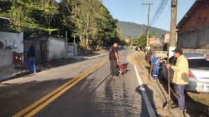 Além disso, avenidas, ruas, vielas, praças, espaços esportivos e de lazer da Enseada, Canto do Mar, Jaraguá, Núcleo Urbano Chico Soldado e Parque Saveiro passam por serviços de limpeza e conservação geral.