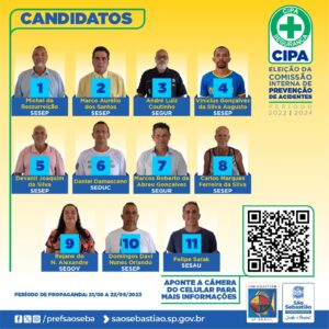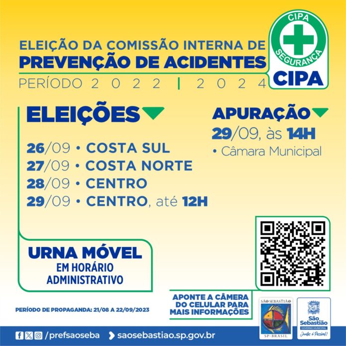 Os 11 candidatos à eleição da Comissão Interna de Prevenção de Acidentes (CIPA) da Prefeitura de São Sebastião poderão realizar propaganda das suas candidaturas até o dia 22 de setembro. O período destinado à divulgação começou no dia 21 de agosto.