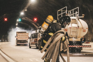 A Concessionária Tamoios realizou, nesta quarta-feira (20), o seu 5º Simulado de Acidentes, em parceria com diversas instituições da região. O exercício foi realizado dentro do Túnel Antônio de Queiroz Galvão da Serra Nova da Rodovia dos Tamoios – o maior túnel rodoviário do Brasil. O simulado também contou com uma Sala de Acompanhamento na Sede da Tamoios (localizada no km 65 da rodovia), onde visitantes puderam acompanhar em tempo real as atividades desenvolvidas em múltiplos pontos do túnel por meio das câmeras da concessionária.