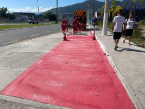 A Prefeitura de São Sebastião, por meio do Departamento de Trânsito da Secretaria de Segurança Urbana (SEGUR) realiza a pintura de solo em um trecho de dois quilômetros entre os bairros Canto do Mar e Enseada, localizados na Costa Norte da cidade.