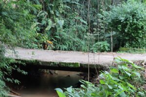 A cabeceira da ponte que liga a Rua Padre Gastão à Rua Pedro Esboriol, em Juquehy, construída em gabião, foi danificada devido às chuvas. A ponte, que tem quatro metros de largura por seis metros de comprimento, será reconstruída em concreto armado.