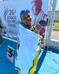 A equipe de Natação de Sebastião teve uma atuação histórica na 26ª edição dos Jogos da Melhor Idade (JOMI), em Pindamonhangaba, nesta sexta-feira (31), após conquistar cinco medalhas para o município. O destaque foi Fabienne Guttin Cantrelle, 69 anos, que ganhou duas medalhas de ouro.