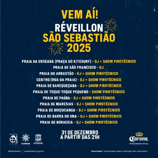 – Praia de São Francisco – Dj (não haverá show pirotécnico);