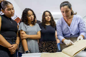 As atividades começaram com uma visita guiada pelo programa Educâmara, onde os estudantes puderam conhecer a história do Legislativo Municipal e visitar o Arquivo Público. No local, a jornalista e arquivista Daniela Outi apresentou documentos históricos e falou sobre o cuidado e a preservação desses registros, que datam do século XIX.