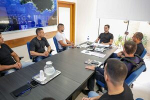 O prefeito de São Sebastião, Reinaldinho Moreira, se reuniu, nesta sexta-feira (4/4), com a Comissão de Concursados da Polícia Municipal para discutirem os próximos passos para a efetiva contratação. Eles estiveram acompanhados dos vereadores Edgar Celestino, Alex Damasceno e Pedro Renato, além do comandante da Polícia Municipal, André Maciel.