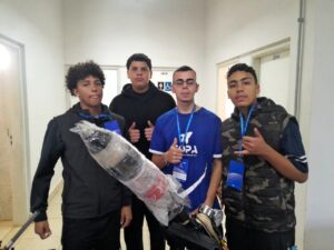 Representando a Escola Municipal Prof. Josepha de Sant’Anna Neves, os alunos do 2º ano do Ensino Médio, Hércules Alves Pereira e Isaac Souza Noronha, da equipe Hidra Legends, alcançaram sua melhor marca com um lançamento de 297 metros, utilizando vinagre e bicarbonato de sódio como propulsores, alcançando o título de vice-campeões.