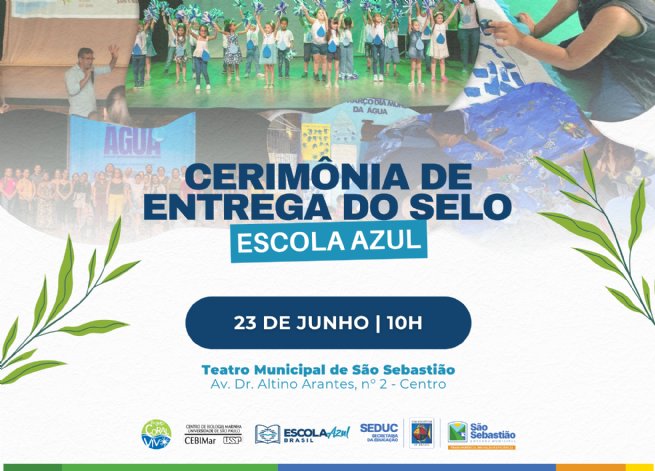 A Prefeitura de São Sebastião, por meio da Secretaria da Educação (Seduc), realiza no próximo dia 23 de junho, às 10h, no Teatro Municipal, a cerimônia oficial de entrega do Selo Escola Azul às unidades da rede municipal de ensino. A certificação reconhece o compromisso da cidade com a promoção da cultura oceânica nas escolas, e marca um feito inédito: São Sebastião é o primeiro município da região Sudeste com 100% das escolas municipais integradas ao programa.