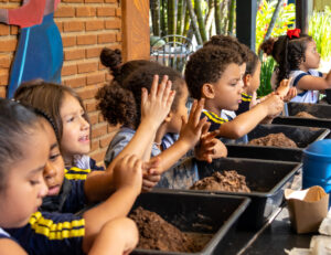Durante a atividade, as crianças participaram de uma contação de histórias, confeccionaram bolas de sementes de girassol e decoraram caixinhas de ovos, levando para casa seus próprios “jardins” com sementes para serem plantadas. Essas ações estimulam a criatividade, o cuidado com a natureza e a consciência ambiental desde a primeira infância.