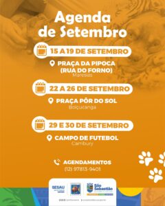O agendamento para as castrações de cães e gatos deve ser feito previamente pelo WhatsApp (12) 97813-9401. As consultas, no entanto, são realizadas por ordem de chegada sem a necessidade de agendamento prévio, das 11h às 14h.