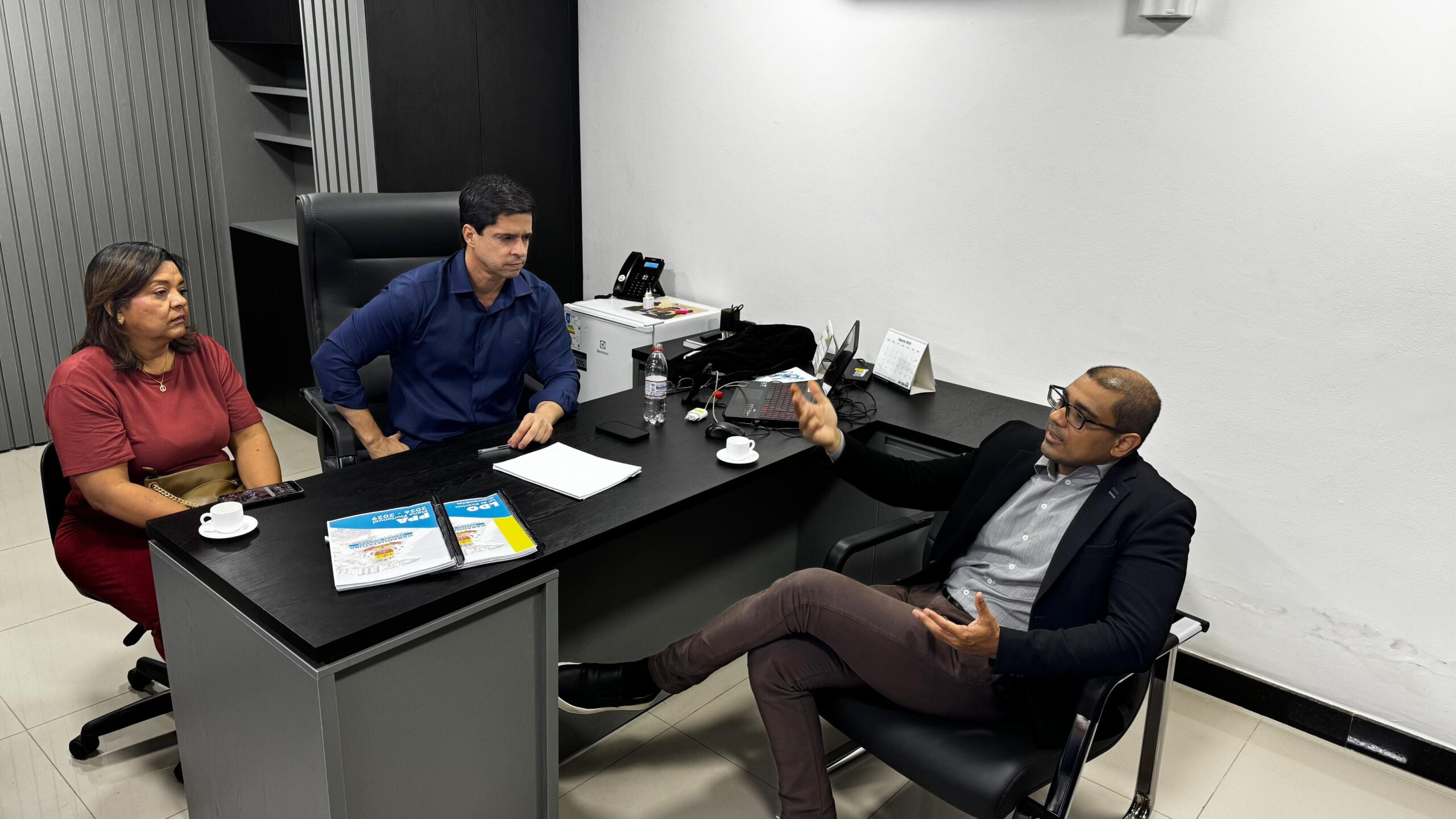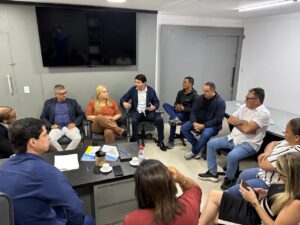 O presidente da Câmara Municipal de Caraguatatuba, Antonio Carlos Junior, recebeu em seu gabinete, na tarde da última segunda-feira (22), o promotor de Justiça, Dr. Valério Moreira de Santana para uma reunião com os vereadores. O encontro teve como pauta assuntos relevantes para o município, como Sabesp, regularização fundiária, adegas e a atuação da concessionária EDP.