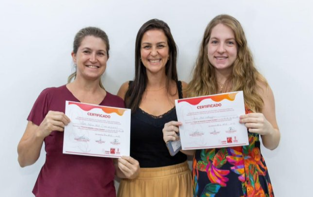O curso começa com um tema interessante que, em algum nível, além da mãe e do filho, também envolve outros membros da família. Trata-se da palestra ‘Acalentar e amamentar: aspectos gerais sobre amamentação’, ministrada pela própria enfermeira obstetra Pollyana Braga.