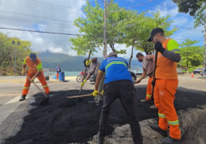 A Prefeitura de São Sebastião, por meio da Secretaria de Serviços Públicos (Sesep), com apoio do Departamento de Trânsito, da Secretaria de Segurança Urbana (Segur), realizou nesta sexta-feira (26/9) serviços de manutenção viária no bairro Varadouro, na região central.