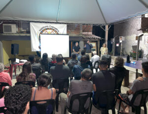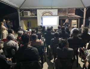 As reuniões comunitárias servem para atualizar a comunidade sobre os trabalhos de regularização fundiária, o andamento dos processos, aumentar a adesão de moradores e completar o cadastro socioeconômico.