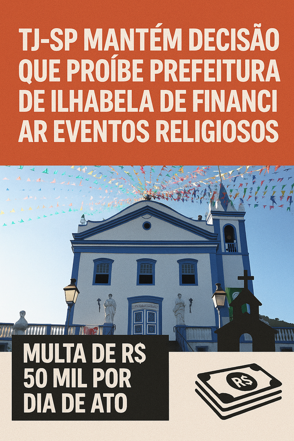 A 13ª Câmara de Direito Público do Tribunal de Justiça de São Paulo (TJ-SP) confirmou decisão da 1ª Vara de Ilhabela que impede o Município de promover ou custear eventos de caráter religioso. A medida, segundo o acórdão, está em conformidade com a Constituição Federal e busca assegurar a laicidade do Estado. Em caso de descumprimento, foi fixada multa de R$ 50 mil por dia de ato.