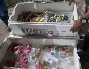 No último final de semana, os fiscais apreenderam isopores e coolers de bebidas, além de batata, pipoca e caixas contendo cigarros, isqueiros e vapes.