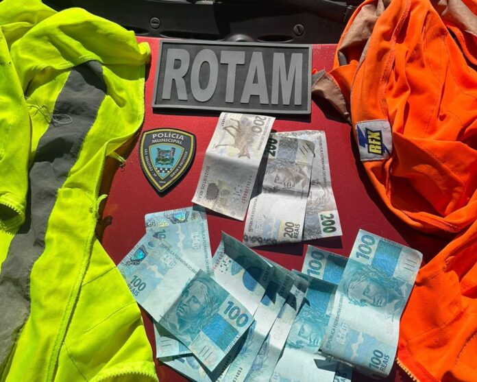 A ocorrência foi registrada na Rua Água Branca, quando os agentes foram acionados pelo Centro de Operações Integradas (COI) para averiguar denúncias de possível prática de extorsão no local com a cobrança de R$ 50 de motoristas para estacionarem em uma área pública.