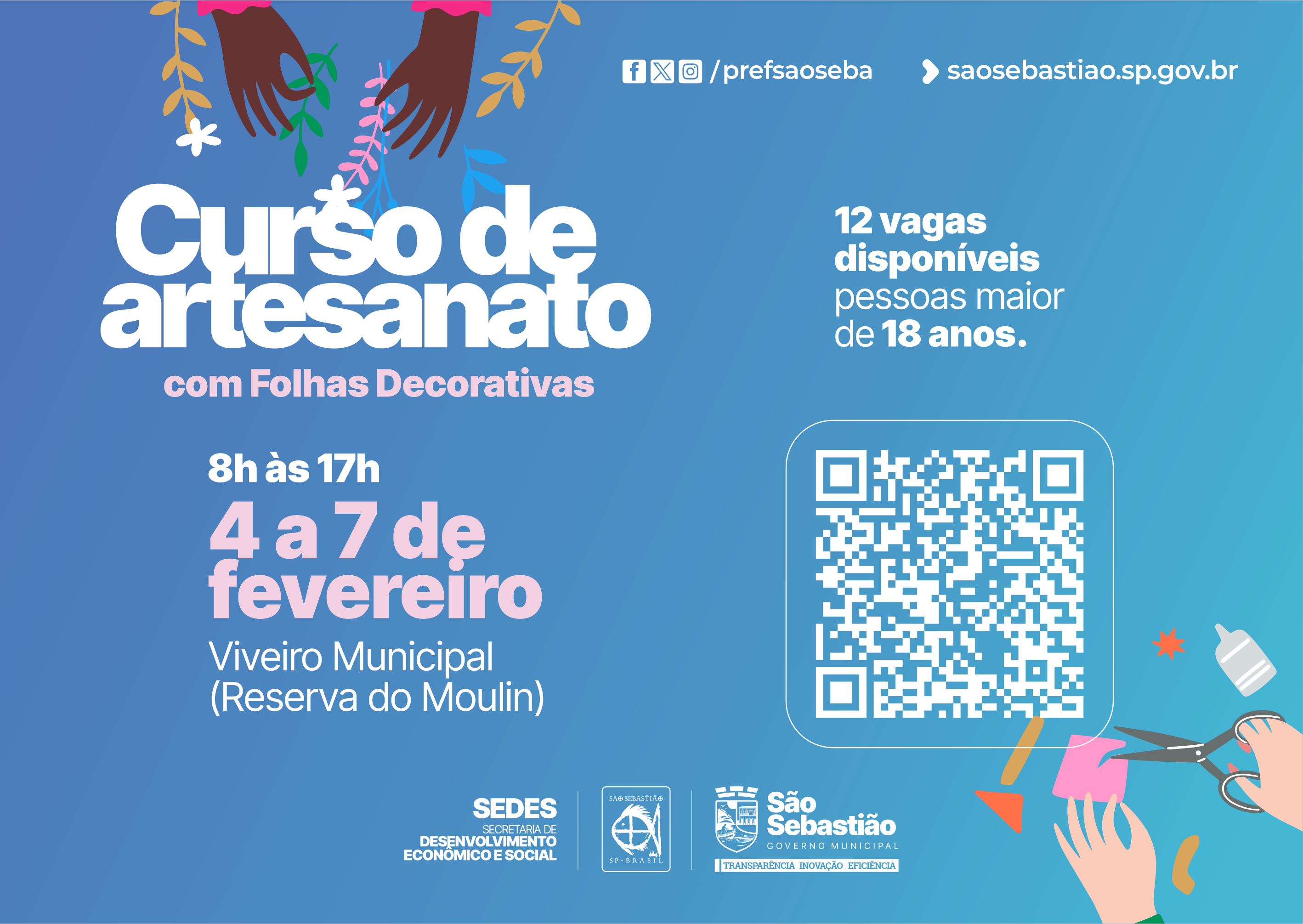 A iniciativa reforça o compromisso da Prefeitura de São Sebastião com a qualificação profissional, a geração de renda e o incentivo a práticas sustentáveis no município.