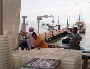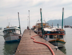 Com o objetivo de otimizar o atendimento aos pescadores que retiram gelo no bairro São Francisco, a Prefeitura também disponibiliza o soprador de gelo, instalado no Píer Nelson Leite. O equipamento permite que o gelo seja transferido diretamente do caminhão frigorífico para os porões das embarcações, eliminando a necessidade de transporte manual.
