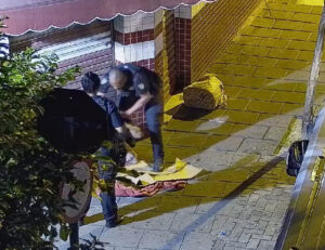 As imagens mostram o momento em que o indivíduo circula pela via pública, pega um pedaço de madeira e utiliza o objeto para arrombar a porta do comércio, entrando em seguida no imóvel.