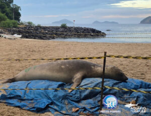 As equipes do Instituto Argonauta, que atuam no Projeto de Monitoramento de Praias da Bacia de Santos (PMP-BS), foram acionadas para atender um elefante-marinho (Mirounga leonina) em São Sebastião, na Praia de Boiçucanga, na quarta-feira (1º/4).