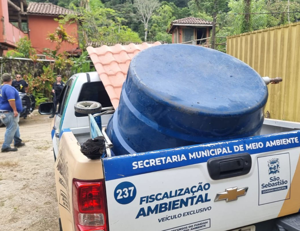 A Prefeitura de São Sebastião, por meio da Secretaria do Meio Ambiente (Semam), segue intensificando as ações de fiscalização ambiental na Costa Sul. Na última quinta-feira (9/4), uma operação integrada resultou na apreensão de materiais de construção em uma área localizada no interior da APA Baleia Sahy, no final da Rua Araras, no bairro Piavú, na Costa Sul do município.
