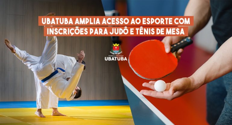 A Secretaria de Esportes e Lazer e a Associação Esportiva de Ubatuba informam que estão abertas as inscrições para as modalidades de judô e tênis de mesa, com 20 vagas disponíveis para cada uma. As atividades integram as ações de incentivo à prática esportiva no município e atendem crianças, adolescentes e adultos em diferentes faixas etárias.