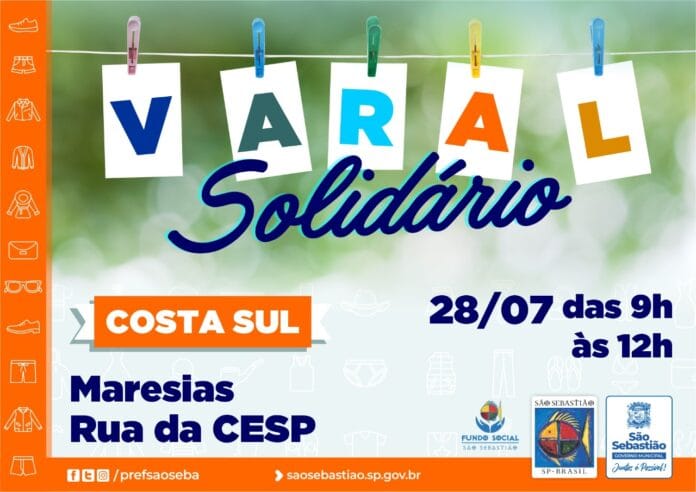 O Fundo Social de São Sebastião vai realizar nesta quarta-feira (28), mais um Varal Solidário, desta vez, na Rua da Cesp, bairro Maresias, das 9h às 12h. A ação solidária consiste na distribuição de agasalhos, roupas e calçados para todas as idades.