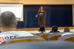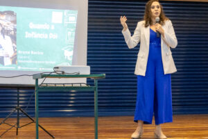 O encontro contou com a palestra da fonoaudióloga da Secretaria da Educação (Seduc) e Mestre em Autismo, Margarete Ribeiro, que abordou a técnica Construção das Inteligências na Criança Autista e Sindrômica (CICAS).